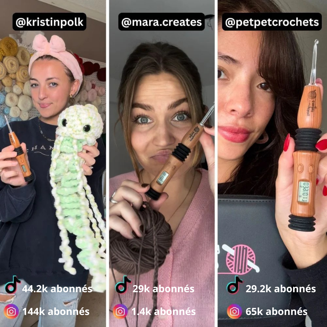 Plus de 20 000 crocheteuses ont acheté notre crochet à compter, y compris des professionnelles renommées. Nous leur sommes profondément reconnaissants de leur confiance et de leur approbation.